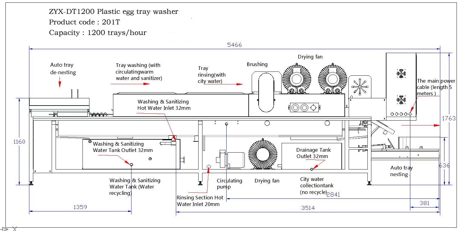 * Net weight and gross weight are for your reference only ZENYER 201T Plastic egg tray washer Floor plan Automatic egg tray de-nesting